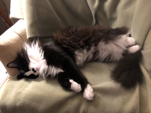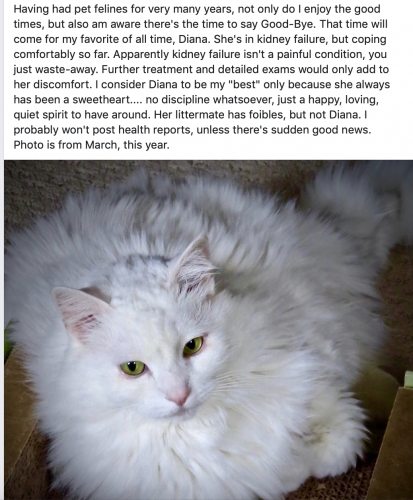 This is the 13-year-old Turkish Angora in kidney failure..... who will eat only Chicken Littles and Salmon.