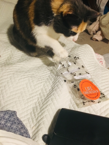 I just found a gift packet of Life Essentials freeze dried wild Alaskan salmon. They are a huge hit with Isabella. She ate some right away this evening - no taking her time like with most food. But then, I found her trying to get into the little package to get more. She at them all! And, she wants more!