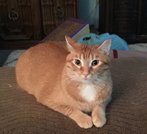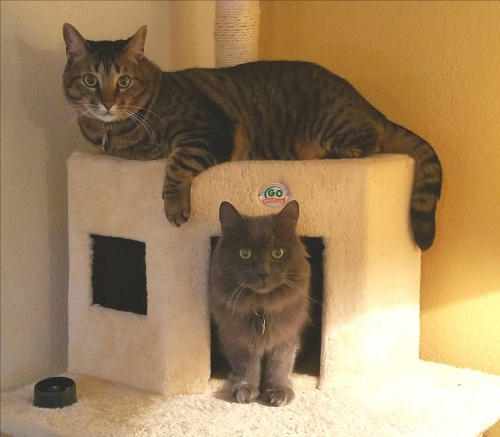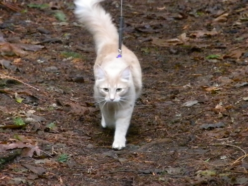 My parents saved me from a terrible place as a baby. They now have me trained as a Certified Therapy Cat and get to on my leash into hospitals, schools and nursing home, but my favorite is hiking in the mountains with them.