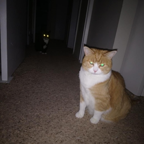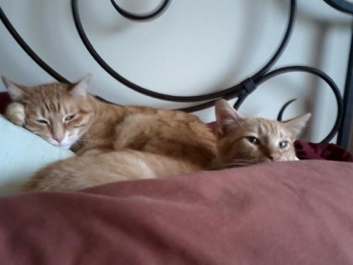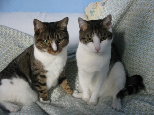 My 6 year old Bowie is the one who really demands the chicken littles and the Salmon.. Finian will now and then eat either one, but only a little... The sardines - they both love(when I can splurge for them).. this is the nicest pic I have of them together - in this one, I think Finian(the 4 year old) might still not be full grown.