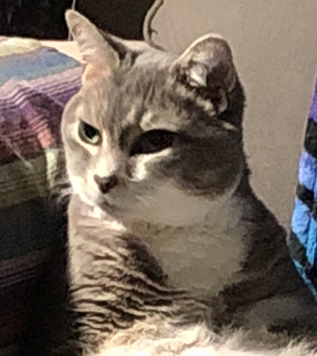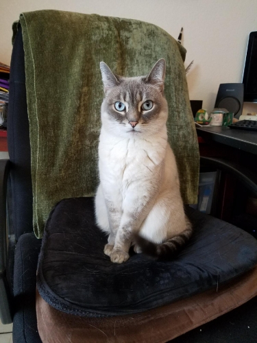 This is our Cat Tess... She is addicted to your White Chicken in any form.. We have begging in the AM when we get up and when we go to bed and periodically during the day. It is her reward for a good brushing (a good brushing is when we have no visible scars). She has been addicted from day one. I found it at a local store in Western Washington for our former cat 10? years ago, when we lived in Redmond. Now we are in Prescott, AZ and so happy to be able to buy on line. I am always confident of the quality and value of your product. I would not hesitate to give it to any of my pets. However since all 3 cats I have had living with us in the last few years are addicted ... I have learned from other owners to not give treats in the morning. The next cat will only get rewards in the afternoon & evening. The 6 am wake up call is not needed in retirement. Thanks for the quality and availability of your product... not to mention the quantity discount for owners of addicts. It helps the Seniors.