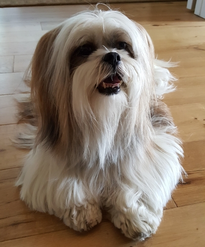 Kam, Is a 7 year old rescue Lahsa Apso who loves to travel S.F. to Vegas and beyond in the car.
