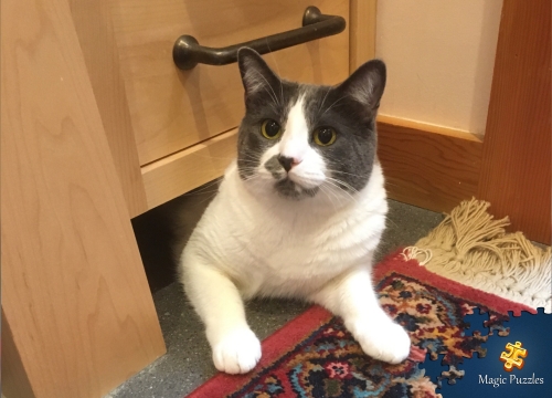 Hi. When I go into my kitchen, Mickie my cat, will sit at my feet and wait for me to ask him if he would like a treat. He gets up and starts to meow at me and I tell him to sit and give him the hand gesture you would give a dog. Then he will sit for his Cat-Man-Doo. He just loves his snack. Thank you